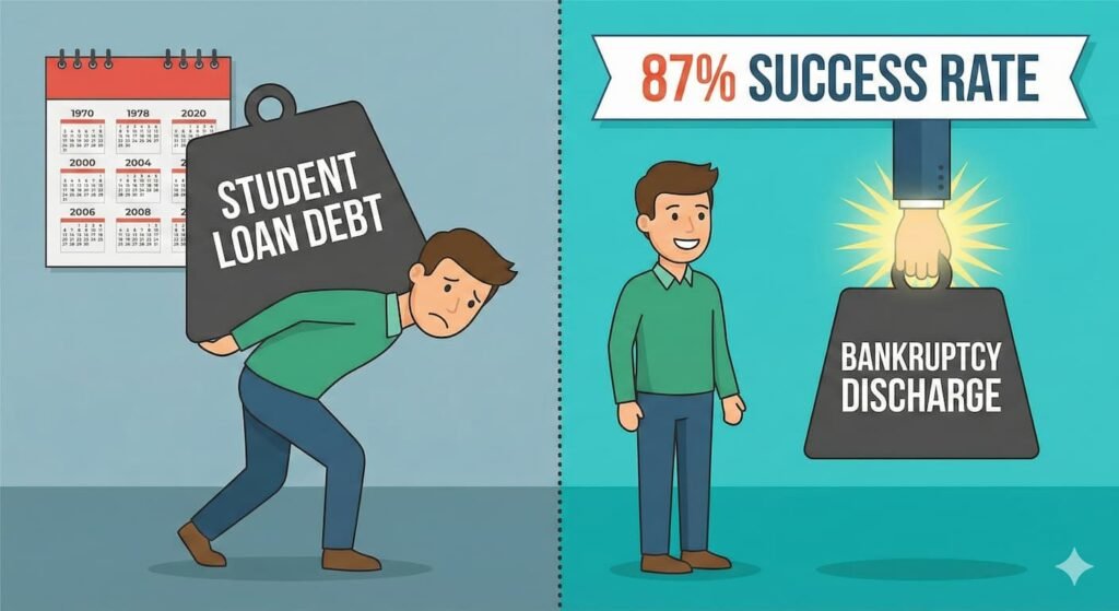 Whether you are filing for Chapter 7 or Chapter 13, the courts are looking at these cases differently now. If paying your student loans would cause “undue hardship”—essentially ruining your financial life—you can ask a judge to erase them. This is the bankruptcy student loan discharge path, and it is a major move that many borrowers are sleeping on.